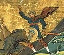 Спасу приклоншу во Иордане главу,/ сокрушишася змиев главы./ Полиевктова же глава отсекшаяся// льстиваго посрами.