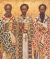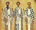 Священныя и боговещанныя проповедники,/ верх учителей, Господи,/ приял еси в наслаждение благих Твоих и упокоение:/ труды бо онех и смерть приял еси паче всякаго всеплодия,// Едине прославляяй святыя Твоя.
