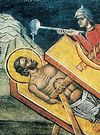 На великой вечерни в Великую Пятницу, которая относится к Великой Субботе и совершается обычно в 2 часа дня - около того времени, когда Спаситель умер на Кресте (в 10-м часу дня, т.е. в 4-м пополудни), воспоминается снятие с Креста пречистого Тела Иисуса Христа и Его погребение.