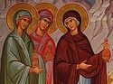 (Дея. 6, 1-7; Мк. 15, 43-16, 8). Неутомимые жены! Сна не давали очам и веждам дремания, пока не обрели Возлюбленного! А мужи будто упираются ногами: идут на гроб, видят его пустым, и остаются в недоумении что бы это значило, потому что Самого не видали. Но значит ли это, что у них меньше было любви, чем у жен? Нет, тут была любовь рассуждающая, боящаяся ошибки по причине высокой цены любви и предмета ее. Когда и они увидели и осязали, тогда каждый из них не языком, подобно Фоме, а сердцем исповедал: "Господь мой и Бог мой", и уже ничто не могло разлучить их с Господом. Мироносицы и апостолы - образ двух сторон нашей жизни: чувства и рассуждения. Без чувства жизнь не жизнь; без рассуждения - жизнь слепа, много истрачивается, а мало плода здравого дает. Надо сочетать то и другое. Чувство пусть идет вперед и возбуждает; рассуждение же пусть определяет время, место, способ, вообще бытовой строй того, что делать намекает сердце. Внутри сердце идет вперед, а на практике - рассуждение. Когда же чувства станут обученными в рассуждении добра и зла, тогда, может быть, можно будет положиться и на одно сердце; как из живого дерева сами собою идут отростки, цветы и плоды, так и из сердца начинает тогда возникать только добро, разумно влагающееся в течение жизни нашей. Некоторые особенности богослуженияВсего Недель до отдания Пасхи — шесть, а до Пятидесятницы – семь: 1-я Неделя — Пасхальная, 2-я — Фомина, 3-я — святых жен-мироносиц, 4-я — о расслабленном, 5-я — о самаряныне, 6-я — о слепом, 7-я — святых отцев Первого Вселенского Собора. По своим воспоминаниям эти Недели (воскресенья) и седмицы относятся к Божественному прославлению Воскресшего Христа, вознесшегося на небеса и ниспославшего Святого Духа Своим апостолам и ученикам. Третья Неделя по Пасхе носит название Недели святых жен-мироносиц. Святая Церковь в своем богослужении в 3-ю Неделю по Пасхе побуждает нас перенестись мысленно от Голгофы ко гробу Христову и Его славному Воскресению, весть о котором удостоились воспринять первыми жены-мироносицы. В богослужении этой Недели из всех близких ко Христу учеников особенно трогательными чертами описывается великий подвиг преданности и любви к своему Учителю и Господу святых жен-мироносиц: «Почто мира с милостивными слезами, о, ученицы, растворяете?» Пример жен-мироносиц показывает, как много тепла, сострадания и любви Господь вложил в душу женщины, которая, благодаря этому, способна на великие дела любви и самопожертвования, если она будет жить во Христе и со Христом, как заповедует апостол, «в неистлении кроткаго и молчаливаго духа» (1 Петр. 5, 4). Текст службы Недели 3-й по Пасхе. Неделя жен-мироносиц. Песнопения праздника. На великой вечерне: