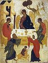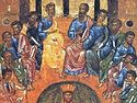 (Дея. 2, 1-11; Ин. 7, 37-52; 8, 12). Совершилась икономия нашего спасения! Действия всех Лиц Пресвятой Троицы в сем деле отныне вступили в силу. Чему быть благоволил Бог-Отец, что исполнил в Себе Сын Божий, то присвоить верующим снисшел ныне Дух Святый. Ибо спасение наше "по предведению Бога Отца, при освящении от Духа, к послушанию и окроплению Кровью Иисуса Христа" (1 Пет. 1, 2). Того ради и "крещаемся во имя Отца и Сына и Святого Духа", обязуясь "соблюдать все, что Я повелел вам" (Мф. 28, 19-20). Не исповедующие Пресвятой Троицы не могут иметь части в спасительных действиях Лиц Ее и, следовательно, получить спасение. Слава Отцу и Сыну и Святому Духу, Троице единосущной и нераздельной, предавшей нам исповедание о Себе! "Отче Вседержителю, Слове и Душе, треми соединяемое во Ипостасех естество пресущественно, и пребожественно, в Тебя крестились, и Тебя благословим во все веки". Некоторые особенности богослуженияВ день святой Пятидесятницы воспоминается и прославляется сошествие Святого Духа на апостолов в виде огненных языков (Деян. 2, 1-4). Название Пятидесятницы этот праздник получил, во-первых, потому, что он праздновался еще в ветхозаветной Церкви, во-вторых, потому, что этот праздник приходится на 50-й день после Воскресения Христова. Сошествие Святого Духа на апостолов есть «свершение» нового, вечного Завета Бога с человеком. О празднике Святой Пятидесятницы. История праздника. Бденная служба праздника совершается по Триоди. Текст службы в Неделю Святой Пятидесятницы. День Святой Троицы. Песнопения праздника. Великая вечерня «Блажен муж...» - вся кафизма.