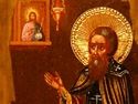 Отечества удалився, преподобне,/ в пустыню вселился еси,/ идеже жестокое житие твое показал еси/ и, многих добродетельми удивив,/ дарование чудес от Христа приял еси./ Темже поминай нас, чтущих память твою, да зовем ти:// радуйся, преподобне Тихоне, отче наш.
