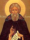 От юности восприял еси Христа в души твоей, преподобне,/ и паче всего вожделел еси мирскаго мятежа уклонитися,/ мужески в пустыню вселился еси/ и чада послушания в ней, плоды смирения, возрастил еси./ Тем быв Троице вселение,/ чудесы твоими всех просветил еси, приходящих к тебе верою,/ и исцеления всем подай обильно./ Отче наш Сергие, моли Христа Бога, да спасет души наша.