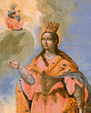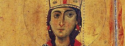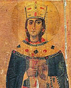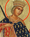 Лик честный Божественне, мучениколюбцы,/ воздвигните ныне,/ почитающе всемудрую Екатерину,/ сия бо в тризнищи Христа проповеда и змия попра,// риторов разумы укротивши.