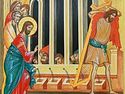 Пророчества дарование прием, пророкомучениче, Исаие Богопроповедниче,/ всем изъяснил еси вочеловечение Господне,/ возгласив велегласно концем:/ се Дева во чреве приимет.