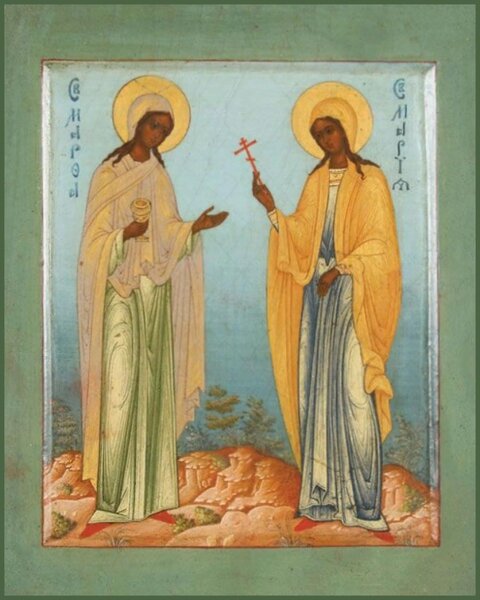 Молитва святым Марфе и Марии О святыя и всехвальныя ученицы Христовы, Боголюбивыя Марфо и Марие! Умолите возлюбленнаго вами и вас возлюбившаго Сладчайшаго Иисуса, Егоже вы исповедали есте, Христа, Сына Божия, да даст и нам, грешным, грехов оставление, в вере правой нелицемерное и твердое стояние. Вселите в сердца наша дух страха Божия, смиреннаго на Бога упования, терпения и к ближним милосердия. Избавите нас молитвами вашими от искушений житейских, бед и напастей, да, тихое и мирное житие поживше зде, с помыслы непорочными и сердцем чистым, с дерзновением веры и упования предстанем на оный Страшный Суд и, добрый ответ на нем воздавше, радости вечныя в Царствии Небеснем сподобимся. Аминь.