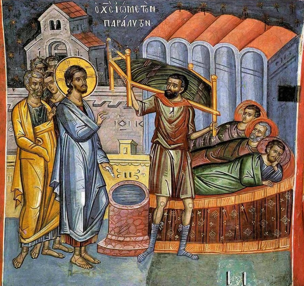 Душу мою, Господи, во гресех всяческих/ и безместными деяньми люте разслаблену,/ воздвигни Божественным Твоим предстательством,/ якоже и разслабленнаго воздвигл еси древле,/ да зову Ти спасаем:// Щедрый, слава, Христе, державе Твоей.
