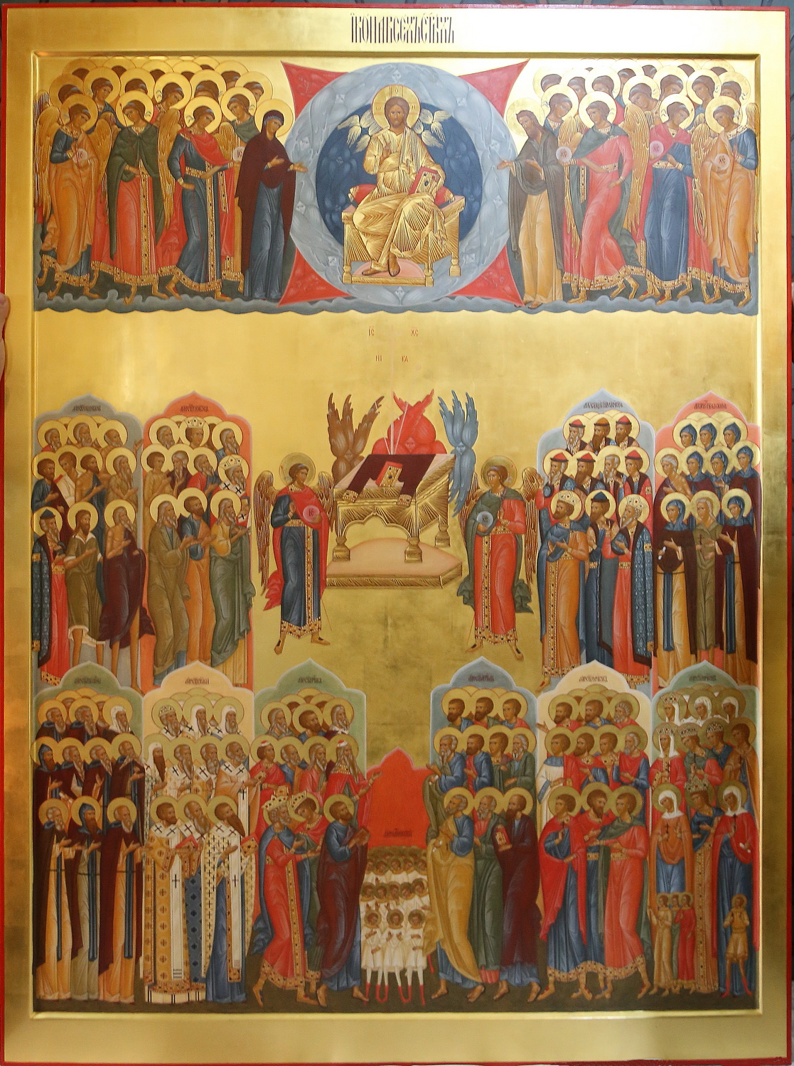 Тропарь всех святых глас 4 Иже во всем мире мученик Твоих,/ яко багряницею и виссом,/ кровьми Церковь Твоя украсившися,/ теми вопиет Ти, Христе Боже:/ людем Твоим щедроты Твоя низпосли,/ мир жительству Твоему даруй// и душам нашим велию милость.